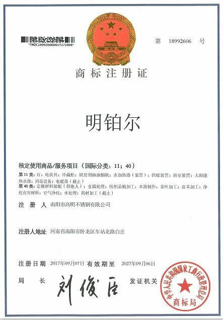 明鉑爾®國家商標(biāo)知識(shí)產(chǎn)權(quán)榮譽(yù)證